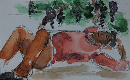 The last three – ink and wash on rough Canson paper, which I am quite happy with – it gives a feel of the roughness of the day and the job…grape picking isn’t so romantic when the heat comes down on your shoulders at about 35 degrees C.