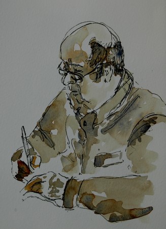 - What a lovely surprise to find your post today, Ronell. Sorry I found it too late to wish you Happy Birthday but I have a feeling you and Hartman had a gorgeous evening after that too hot day. It’s still too hot in Tuscany too.Beautiful sketches, I love the woman with the long ringlets and the old chap writing and then every single sketch that follows that! You are in extremely fine form and I’m looking forward to many more. I’m really in awe at your ability to capture such characters from a discreet distance.