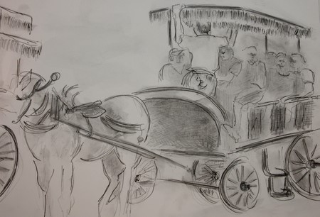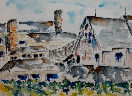 I could only succeed in getting this one sketch done in Charleston when we were there a while ago. It rained from the moment we got there until we left. I couldn’t even get my camera out to take a picture or two…