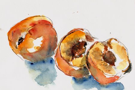 12. Ronelll, I came by for a visit the other day, and forgot to leave a note! The peaches are just wonderful – I think you’ve hit the perfect note here – loose and flowing but “juste”. I think the beauty of Autumn becomes more intense because of the sadness we feel at the end of summer and the prospect of winter – but Spring will follow!