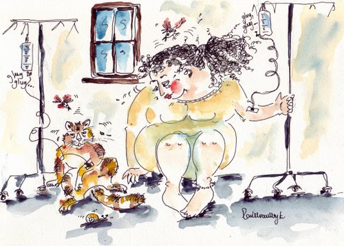 I love your sweet drawing –keep chatting with the cat–they’re great comfort creatures– don’t you think?