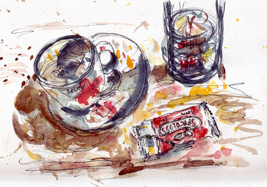 done in watercolor in Hahnemuhle watercolour sketchbook, 15.3x25cm.