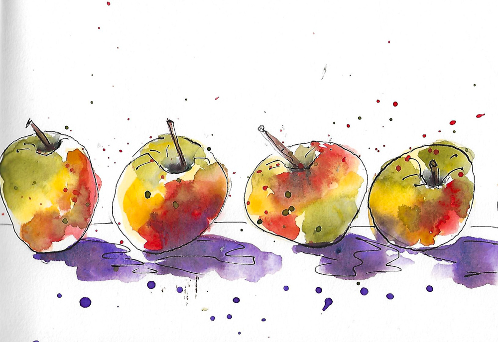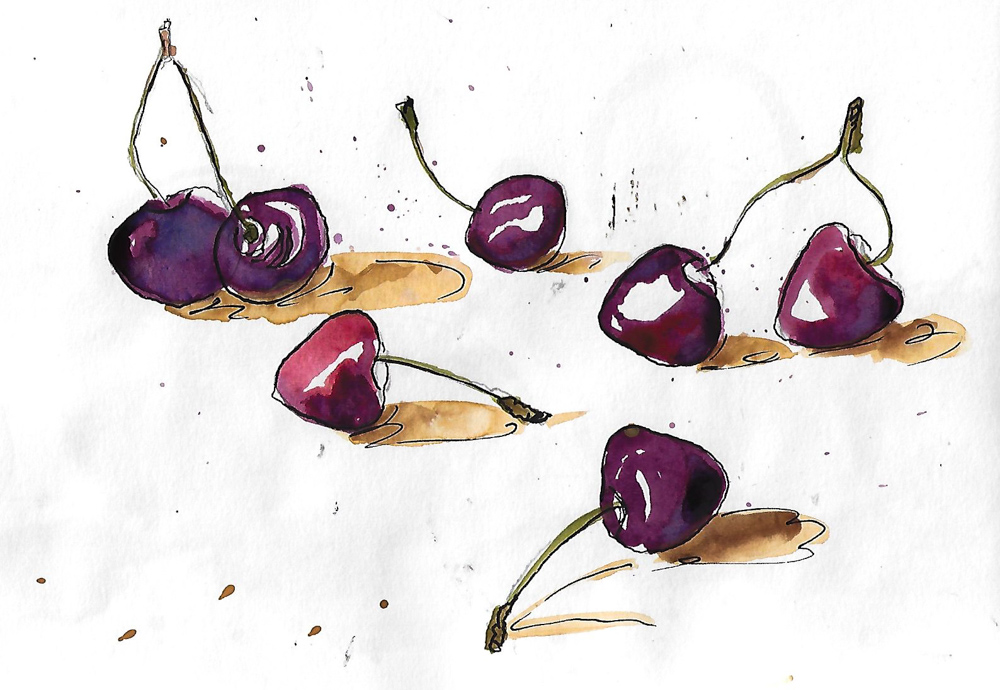 “A favorite food,” says the list of the art group EDM for this month of May.. Only one favorite food? That is a huge punishment! I can draw a favorite food for a whole month and even beyond. How then to choose between all my wonderful favorite fruits, the colourful vegetables, the meat…(yes, you Greenies, I love my meat!) And then there are fish and shellfish and how about a slice of cake? Or a cookie. And dessert. I never skip dessert. I won’t even mention chocolate and that first cup of coffee in the morning. Only one favorite food?