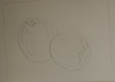 I started again. Same apples, Another pencil drawing.