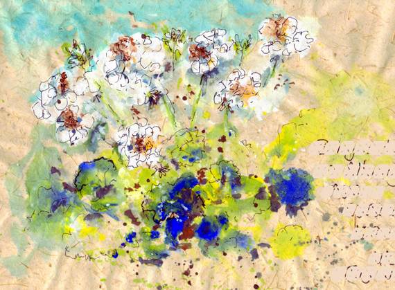 The sunflower just asks for some splattering…suggesting bees working, pollen blowing in the wind, petals falling off… movement.