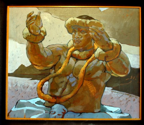 Meat ; conserved/dried: ham taken from the porc, signifies gluttony sin.