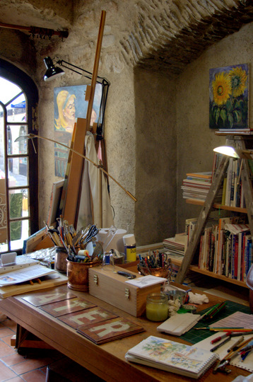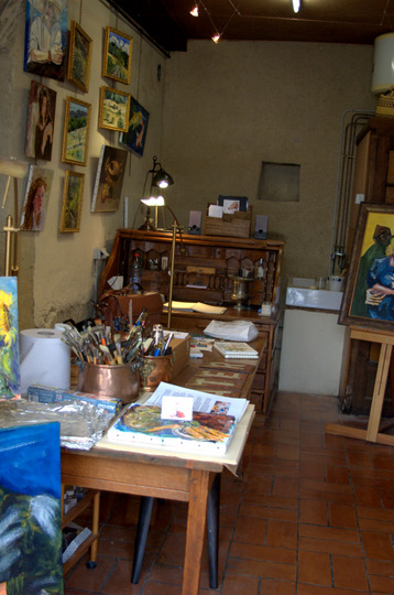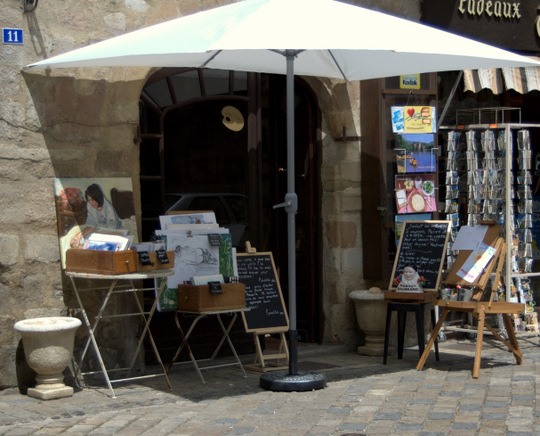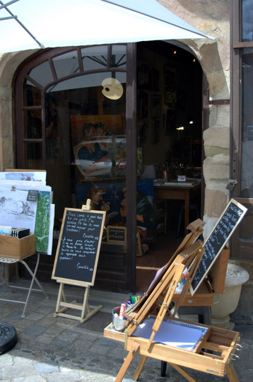 I have a new project this summer. I woke up one day a few weeks ago and decided I want a little gallery/atelier in Beaulieu. After searching and asking around, I came upon a tiny location, right in the medieval center of Beaulieu sur dordogne, opposite the beautiful old church. I hastened to get my things in order…what things?…drove up to Montlouis to fetch “stuff” to fill my gallery with, drove back 5 hours, offloaded, had a glass of champagne to celebrate this new”craze”, went to bed and unlocked my tiny gallery/atelier the next morning to welcome my first visitors..oh no sorry…clients? Lo and behold, I sold quite a few things!