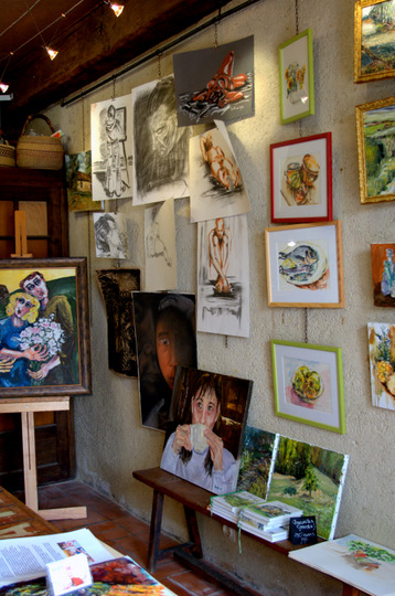 My goal is probably not to get rich from this little gallery, but to make people aware of art and the fact that art doesn’t have to be expensive or for an exclusive part of the population. I want to show that a gallery doesn’t have to be boring, but can be fun and there can be something for everyone. I would like to have people feel the joy of buying a handmade postcard rather than a boring mass produced postcard from a tourist stall. I work in the gallery while people are browsing and talking to me and asking questions and so far, it seems as though they are enjoying the ambiance and feel of my little gallery, me working there included. Many have made comments on the nice smells of the citrus solvent I use, they enjoy touching and picking up, looking from up close. they even enjoy my music, which is mostly Edith Piaf and the poems of George Brassens and Léo Ferré.