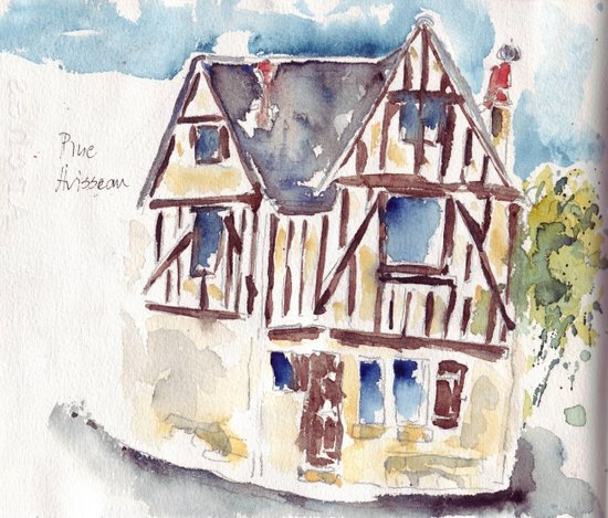 Pen and Schmincke WC in handmade sketchbook(handmade by Marta)