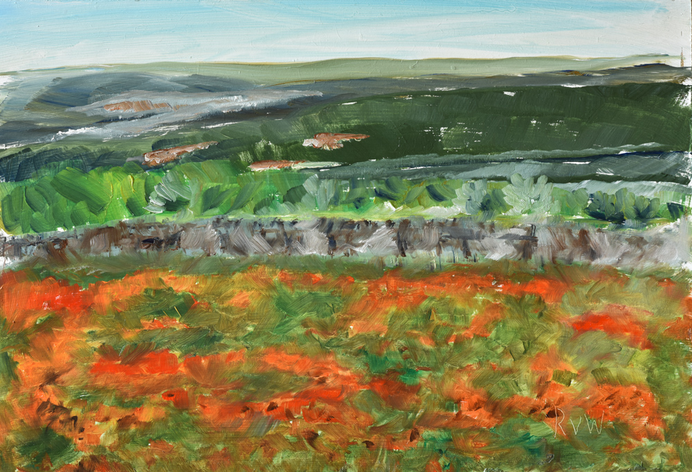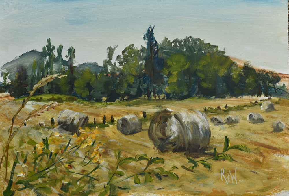 These are gorgeous and inspiring…I keep thinking about painting outside, but never actually do it.. I particularly like the tree on the hillside and the gorgeous clouds on the upper left painting. Wonderful work!