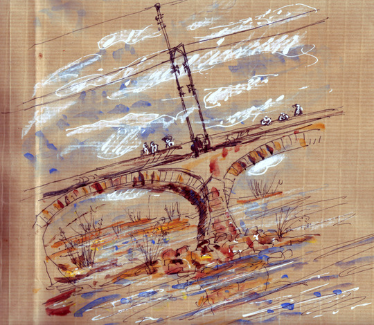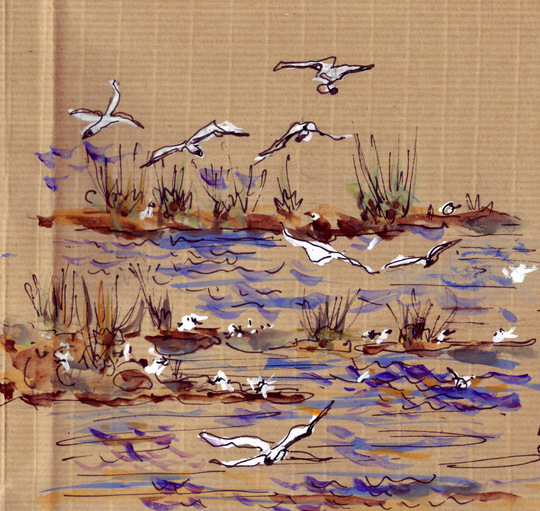 I made a first little painting, on site, and found it too heavy and overworked.(Painting 1)