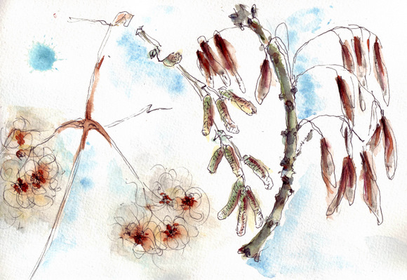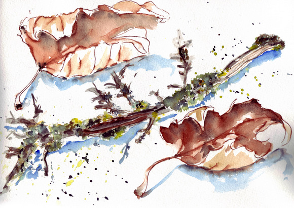pilot black ink on drawing paper, with natural materials, found on the ground.
