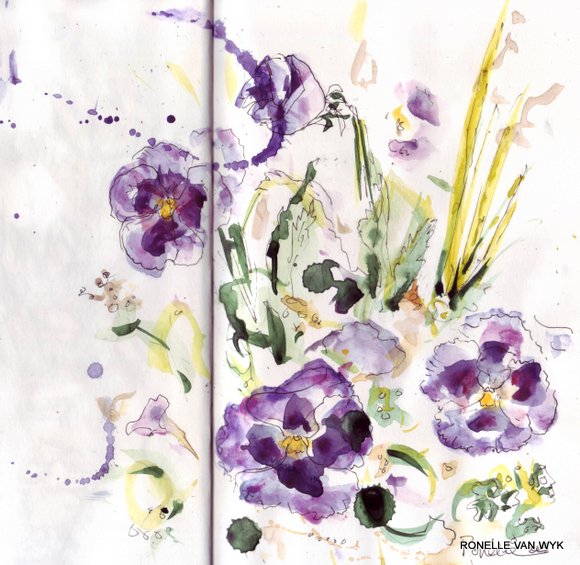 I have been asked so many times how I do my splashes and after another request from Sophia, I thought I could do a pôst to explain how I splash ans splotch. have forever been doing splashes in my watercolor paintings and sketches. I paint and sketch with a big brush and loads of pigment and water and the splashes almost happen all by itself on my page. There are times though that I use splashes to emphasize or create a certain effect or atmosphere. It all depends on the sketch or painting.  I notice that it has become very fashionable in the sketching world to use splashes which is great. But sometimes a sketch can look out of sorts with splashes, which either don’t fit the style of painting or the subject doesn’t ask for splashes, and so it appears on sketches just because it is fashionable. I love my splashes, but I don’t use them every time and with every subject.  I would like to see that watercolor work  show more discretion when using splashes, before it ruins an already perfect watercolour painting or sketch.