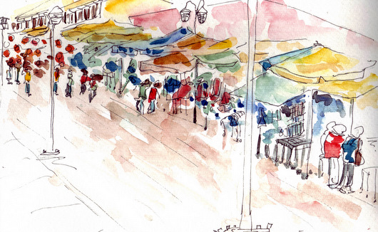 the sketches are all done in situ and there will be blotches all over, because I turned pages while the paint wasn’t completely dry. a lot of mistakes too, which stayed on the pages, since I did everything directly in pen and just sketched over the mistakes. As you can see, my sketchbooks aren’t perfectly beautiful…too many blops and bloops!